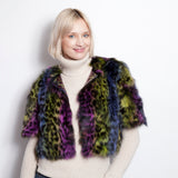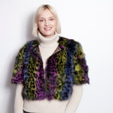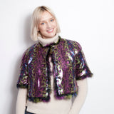 This fabulous, colorful Fox bolero in a leopard print was made for fun! The bonus is that it’s reversible, revealing a sequin, shimmering delight. No disco ball needed for dancing!