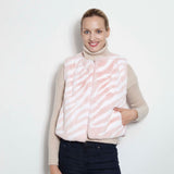 A beautiful pink and white Rex cropped vest adds a playful statement to any outfit. This vests has a lot seasonality as it looks as fabulous in spring as it does in the middle of winter.