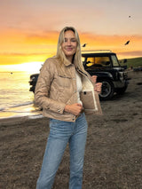 A light, quilted down jean jacket is the perfect topper for spring. The 2 Tone color way is in expected twist. Multiple, Inside pockets for your phone, lipstick wallet… make it a great choice for travel too.