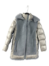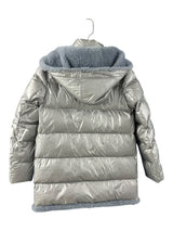 Faux shearling with a plush poly fill make this metallic jacket a standout. The hood zips on and off depending on the weathe.