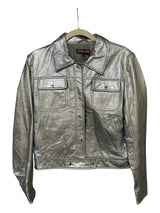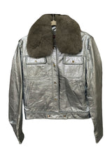 Metallic Light Blue Nappa Jean Jacket with Removable Collar