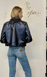 Navy Metallic Nappa Leather Jacket