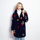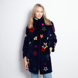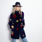 A vibrant, Star intarsia Rex rabbit coat will have heads turning. It is bright and happy on a cold winter’s day or night. It will out a smile on your face and everyone around you!