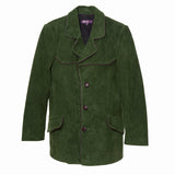 Soft, supple Hunter Green suede defines the blazer style jacket.  The chocolate brown leather piping and cover buttons add a chic contrast detail with a sophisticated edge. This pieces wears well with denim and boots or flowy dress or skirt. Make it your go to!