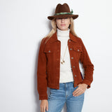 Soft suede defines this easy to wear jacket. She has 9 months plus wearability and looks great with dresses and jeans!