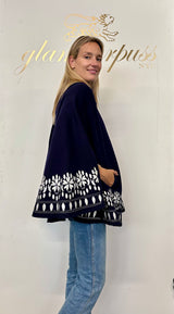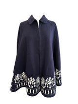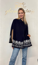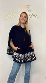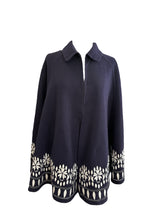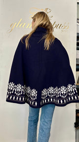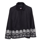 Swing into Stunning with this embroidered black and white cape. Double faced wool, side slash pockets and a gorgeous swing, in addition to the gorgeous detailing, make this piece a true head turner. WOWZA!