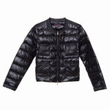 Feminine,flirty and fun, we love this new addition to our down collection. This jacket with frills and a large gold double zip is perfect for travel and works well in warm and cool climates. Wear with everything from denim to leather to dresses.