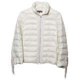 A light weight, but warm down jacket with fabulous fringe accent on the sleeve. The fringe can also be zipped in for less effect. This jacket is a fun addition to your wardrobe. It looks great in Mountains and on Madison.