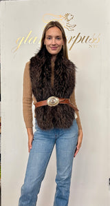 Sleek and chic, this timeless piece has big impact with multiple ways to wear. Backless, the beauty is in the front framing your face and accenting your look from a simple white shirt to added drama over a coat. Dyed Coyote