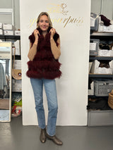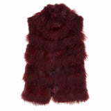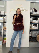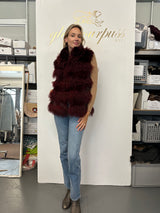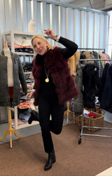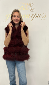 Cool girls rock in this chic burgundy vest. The Mongolian lamb and rabbit layers give fabulous movement. Pair this denim or leather and you are turning heads!