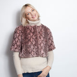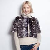 Cropped Collarless Faux Fur Snake Print Jacket in Rose