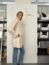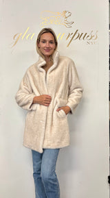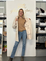 A fabulous faux coat that will make cold weather dressing cozy and hot! She's glamourous and fun.  The inside is chic too with a hidden drawstring to accentuate your waist.  Don't miss out on this beauty!