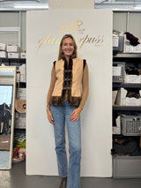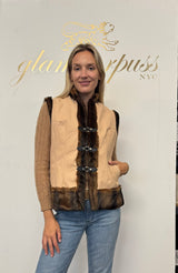 Named for a chic, stylish friend, the Marianna vest will escort you wherever you go. Faux fur and suede, with faux leather snaps, she looks great for added warmth over a dress; pair with jeans for a day in the country; or wear with leather for stylish dinner. Any where, any how, you can't go wrong!
