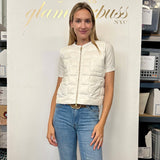 Feminine,flirty and fun, we love this new addition to our down collection. This vest with frills and a large gold double zip is perfect for travel and works well in warm and cool climates. Wear with everything from denim to dresses to sportif styles.