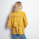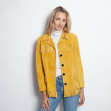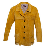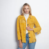 A buttery soft suede in a flattering color, defines this fabulously chic jacket. The fringe detail is a head turner. Shipping Mid