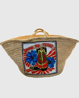 Our fabulous hand beaded Cowboy Boot patch with a lucky horseshoe and floral design is perfect on a classic straw marker bag.