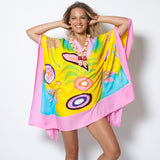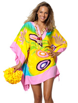 The beach ponchos are a unique and colorful alternative to the traditional tunic. Inspired by the ease of warm weather living, the ponchos are perfect as a swimsuit cover up or as a statement piece paired with crisp white trousers. Each one is individually hand batiked in Bali with designs from Bermudian artist Dana Cooper. Drawstring sides allow for a loose or more gathered fit.