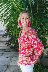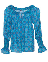 Sardinia Smock Sleeve Top Blue Tile