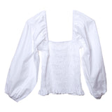 Fresh as a summer day, this top with smocked bodice and puffed sleeves is the perfect addition to your wardrobe. Brighten up jeans, skirts or pants with this sophisticated silhouette. Also available in White and Gauguin Stripe Blue.