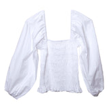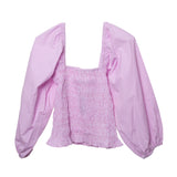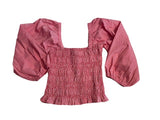 Fresh as a summer day, this top with smocked bodice and puffed sleeves is the perfect addition to your wardrobe. Brighten up jeans, skirts or pants with this sophisticated silhouette. Also available in Pink Gingham, White and Gauguin Stripe Blue.