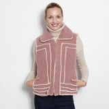A light blue colored sheared lamb jacket with cream piping, is a wearable chic piece that is perfect accessory to your cool weather line up. Country walks, shopping sprees or apres ski, you will have what you need!