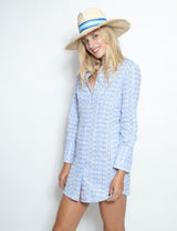 This attention grabbing dress in a slim, flattering shape will have heads turning. The classic, cotton blend fabric accentuated with a white embroidery or our gold floral trim, will have you dancing in the sun. Pair with one of our hats for a complete look.