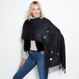 Charm like jewels scattered on a woven cashmere blend scarf add an unexpected touch!