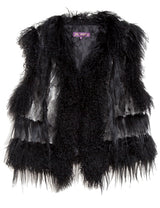 Metallic Mink and Tibetan lamb come together to define this vest. The metallic silver gives this piece a nice edge. Pair with dresses, skirts and pants. There are endless options! Boho Glam!
