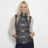 This vest has just the right amount of sparkle and shine and a flattering fit.  Perfect for City or Country, you will be the most Glam Girl around