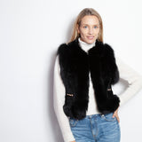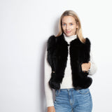 This chic Rex vest is accented with fox trim and gold/leather accents on the front pockets. It’s a stunner!
