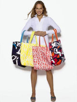 SCUBA MEETS CHIC! Take this boldly printed neoprene scuba chic tote to the beach and let the waves roll in! It's perfect for sunny days, sand and wet swimsuits! The removable pouch holds wet swimsuits and the entire tote is so modern it can be rolled up and stuffed in your suitcase for easy travel. It holds everything you need to keep summer fresh! Plus it’s washable so you never have to worry. It comes in 2 bold prints-- Ete Soleil or Nautical Pop—either one will get you noticed.