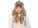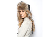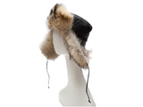 A glamourous addition to your cold weather line up. A soft, plush leather trapper shape hat with quilted lining and natural coyote accents. Wear it tied up or down for a chic winter look.