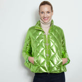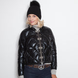 A high voltage puffer in metallic black embellished with ice crystal trim. Watch out winter..here we come!